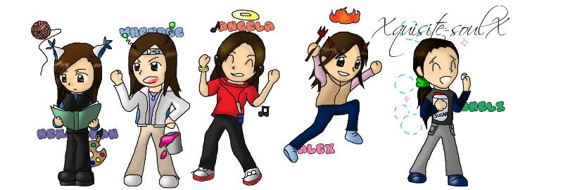 Sunday, February 27, 2005Coming and GoingAawww... sweetiee Cheli, you're never isolated. =) You have us! *everyone crowds around Cheli and jumps on her* xD!! Doing THAT, I don't think you'll want us, LOL.Holee crapppp.. I seriously cannot believe the amount of money Angie spent on her CDs. Honestly, you have basically all the songs, why bother buying the CDs? x__________X Just to have the real thing, yes I know. But that much money? I don't even have that much to spend on myself...lol... And I love my new earrings (especially the ones Alex got me). *hugglex earrings until she stabs herself with them* Ow... I should be vacuuming. I should be doing homework. But nah. There's always later. *later comes and goes* Damnit.